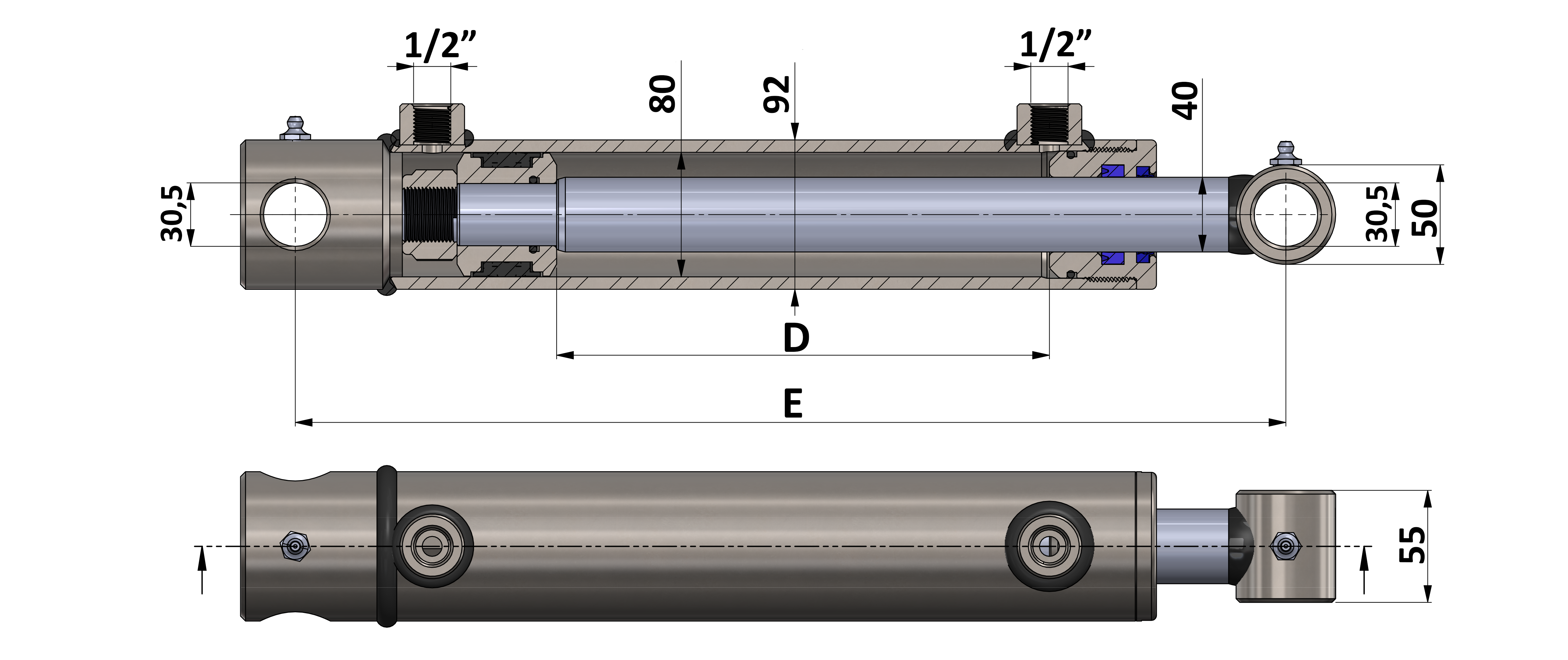 HYDRAULIKZYLINDER HOLE 80/40-550