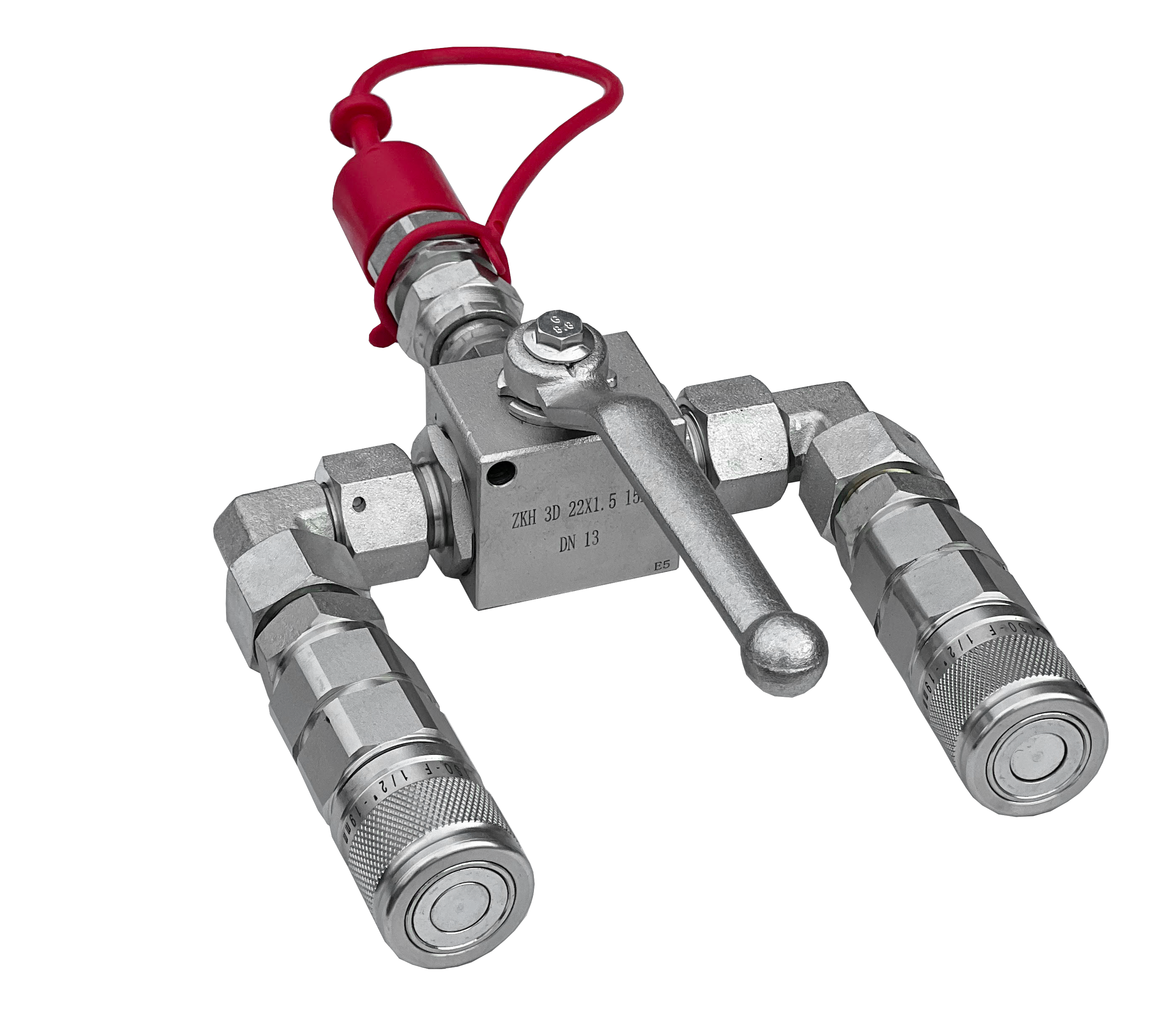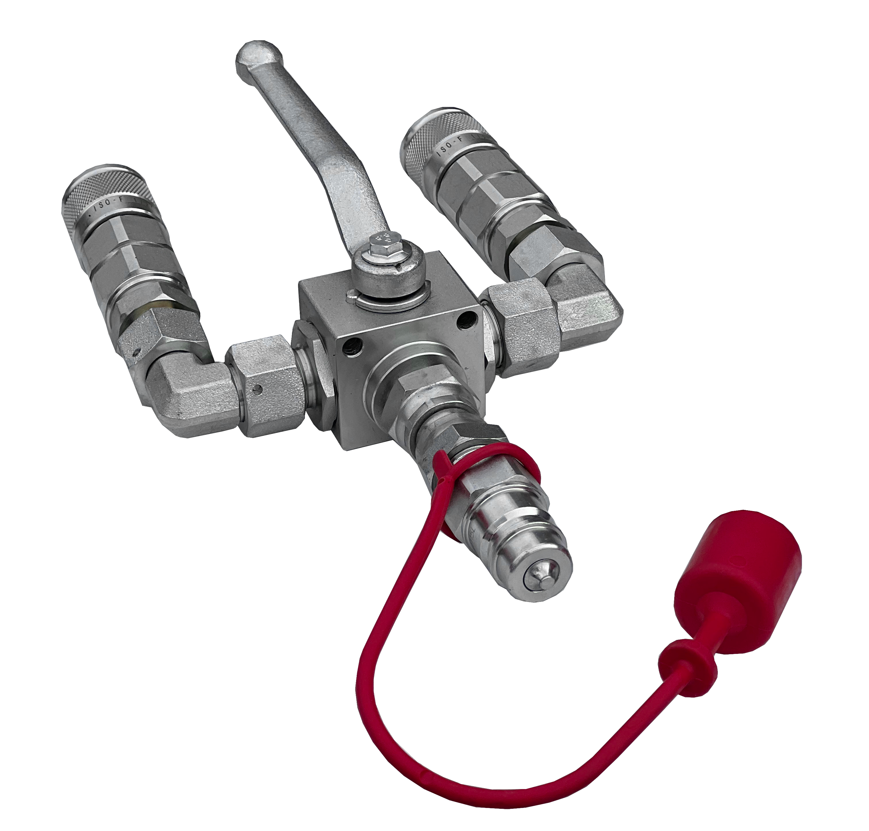 Der manuelle Kipperausgangsverteiler ist ein hydraulisches Element mit Schnellkupplungen, das eine Umlenkung zwischen zwei Kipperausgängen ermöglicht. Der Übergang erfolgt mit dem Griff am Absperrhahn, wobei immer nur ein Ausgang gleichzeitig genutzt werden kann. Für Bagger gedacht.