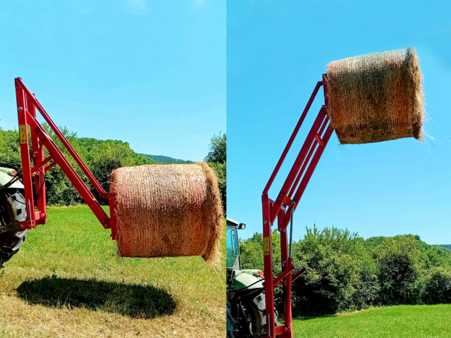 Ein Kunde aus Kroatien hat zu Hause einen Ballenlader gebaut, der eine Höhe von bis zu 3,7 m erreichen kann. Auf diese Weise können mehrere Ballen in einem Stapel geladen werden, wodurch die benötigte Fläche für die Ballenspeicherung reduziert wird.