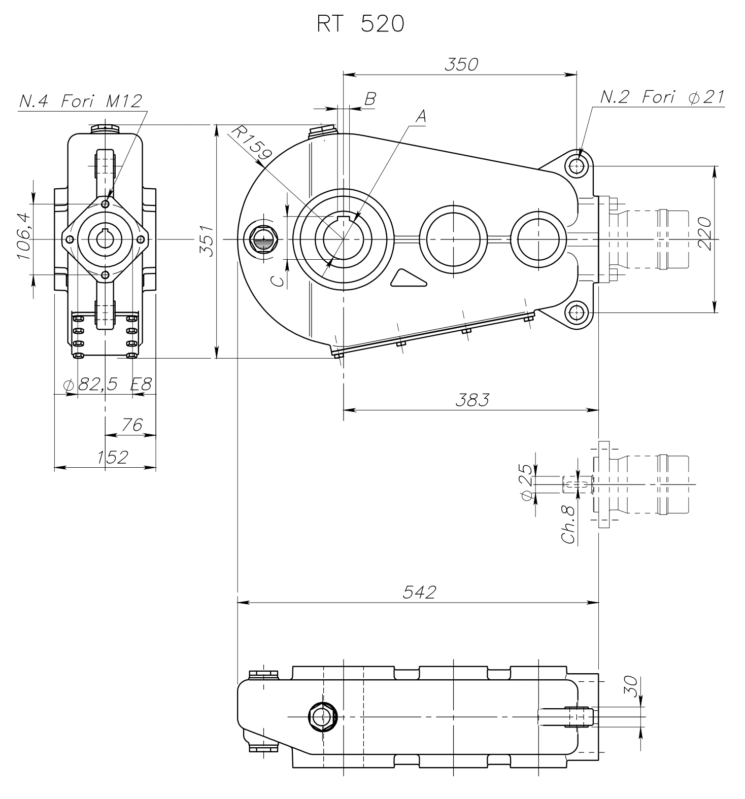 ÜBERSETZUNGSGETRIEBE - REDUKTOR RT520 FÜR HYDROMOTOR MP/MR/MS verhältnis 43,6:1
