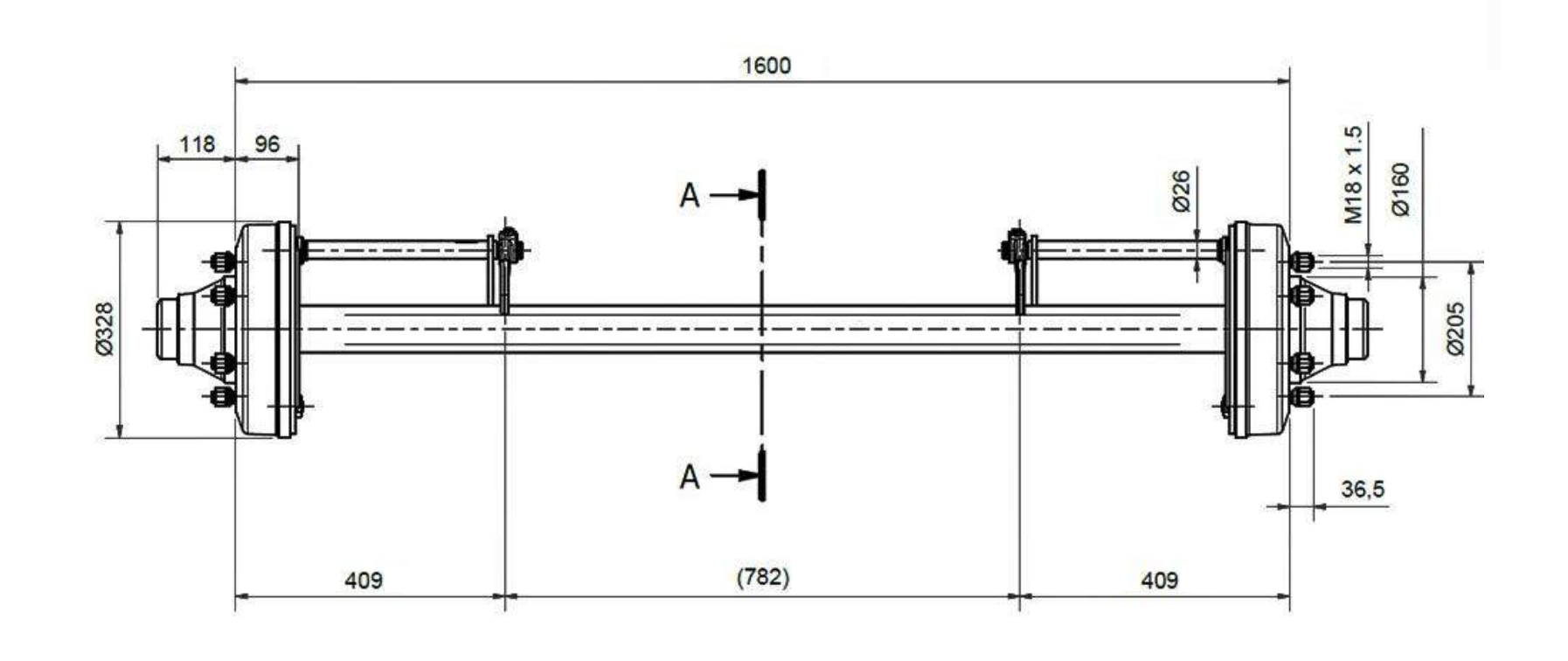 ACHSE FÜR ANHÄNGER 8300 kg MIT BREMSE (1600 mm)