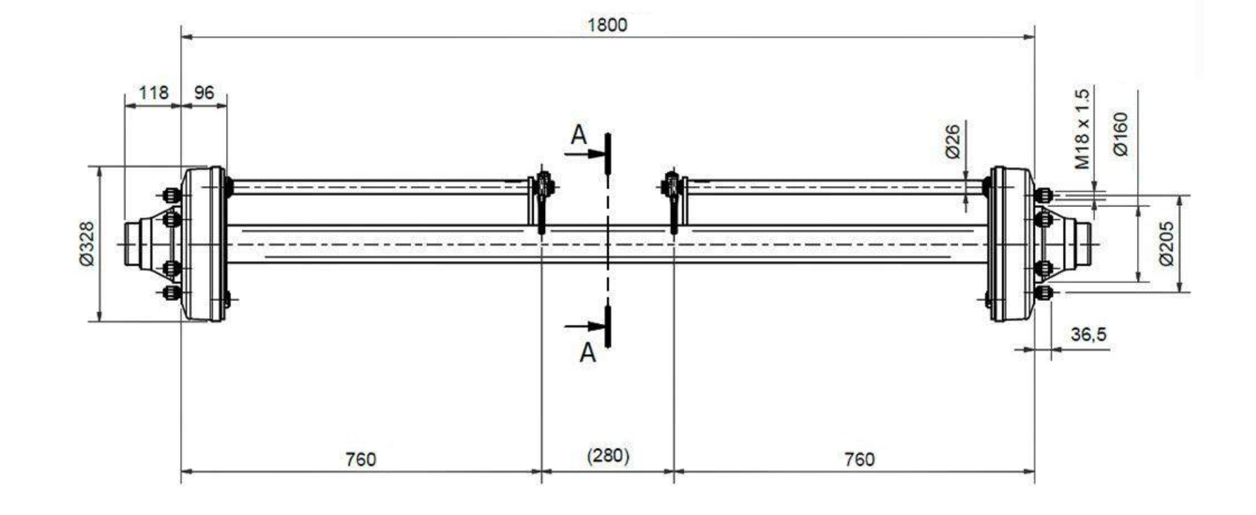 ACHSE FÜR ANHÄNGER MIT BREMSEN (6 SCHRAUBEN) - 7200 kg - 1800 mm
