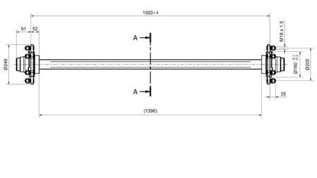 ACHSE FÜR ANHÄNGER 4800 kg OHNE BREMSEN (1500 mm)