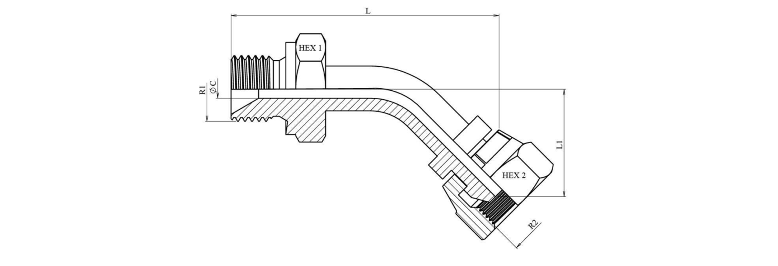 HYDRAULIK KNIE 45° BSP MÄNNLICH-WEIBLICH 3/4
