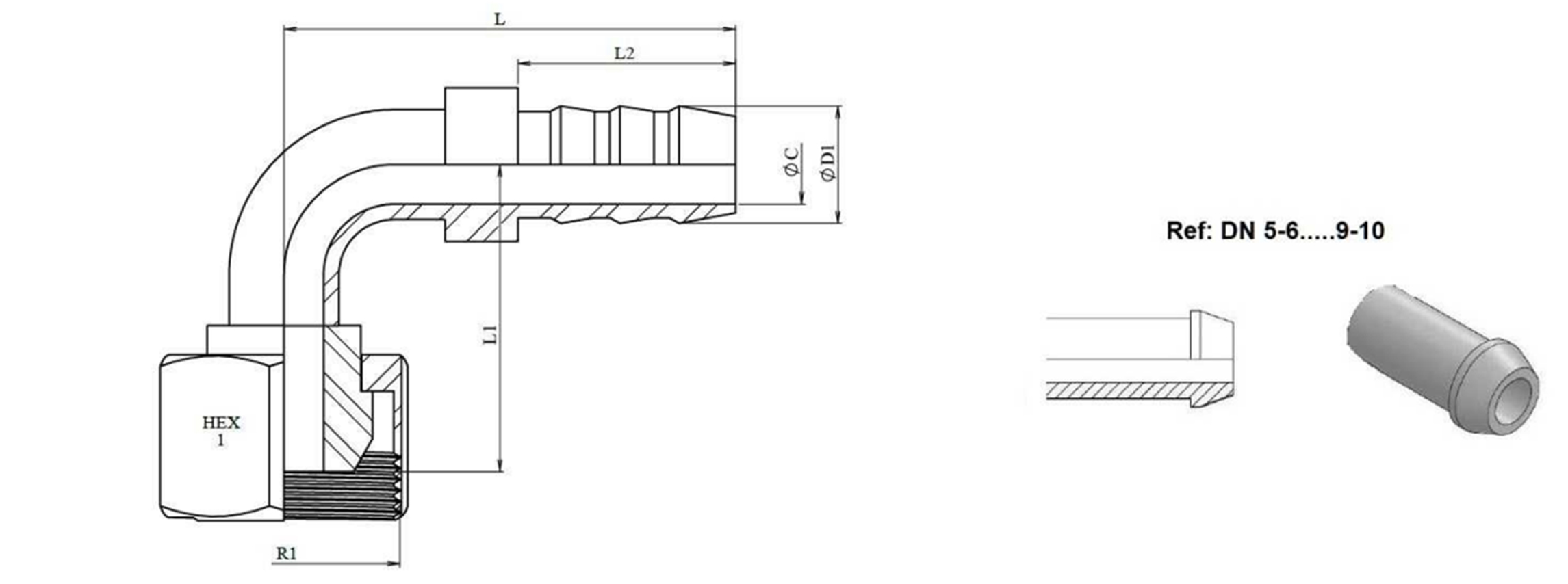 HYDRAULIKANSCHLUSS - MÄNNLICH 3/4" FÜR GUMMISCHLAUCH FI 15 - 16