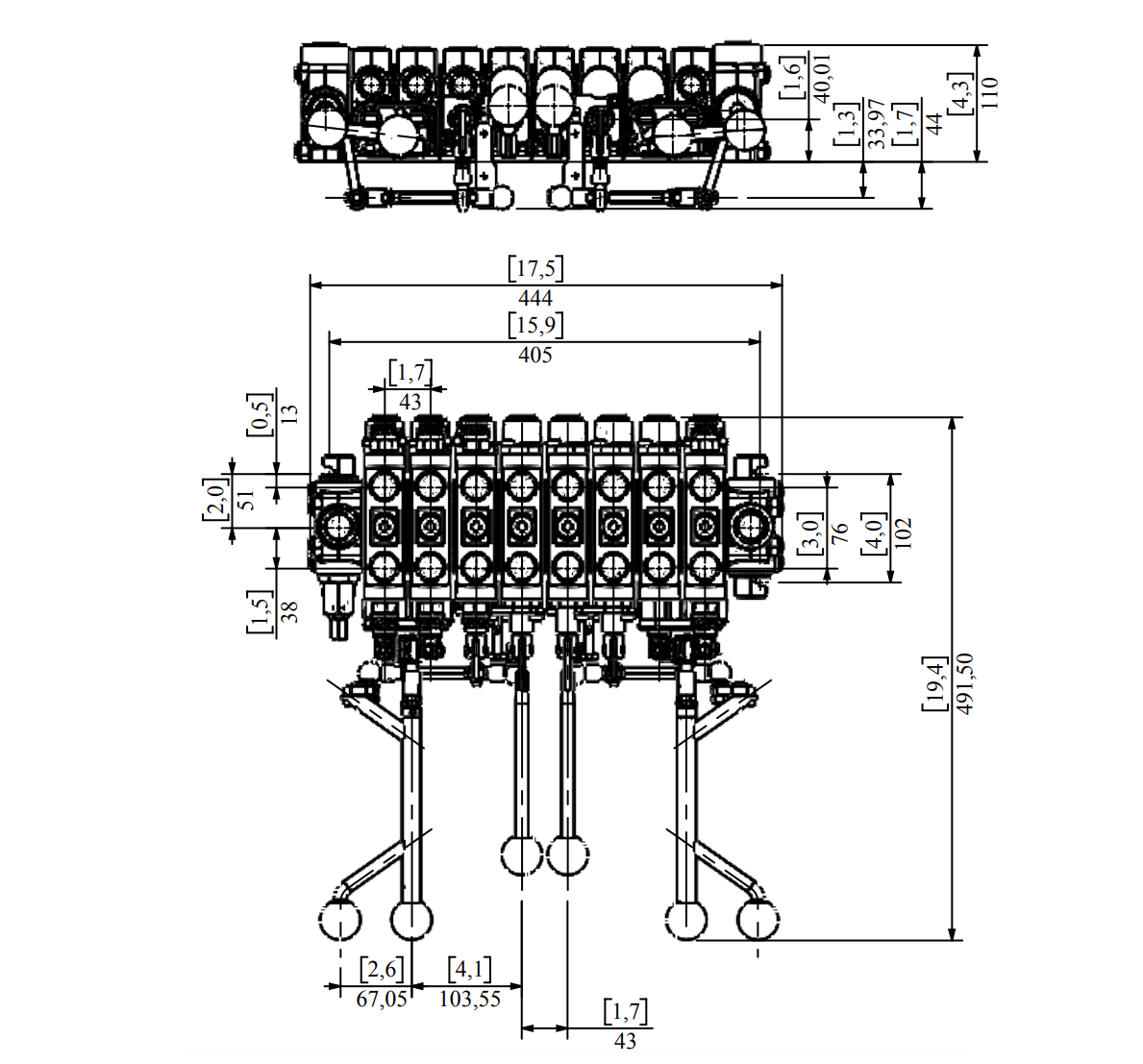 HYDRAULIKVENTIL HIAB 8xPC70 + 2X EURO JOYSTICK 3 POSITIONEN