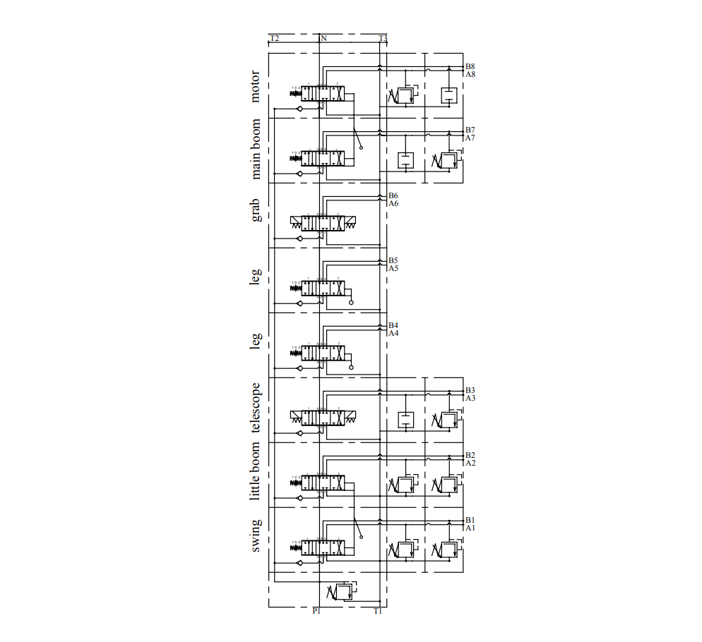 Das PC70 ist ein stapelbares (abschnittsweises) Ventil, das für den Einsatz auf Forstanhängern mit Kran (HIAB) entwickelt wurde. Es ermöglicht sowohl mechanische als auch elektronische Steuerung. Das Hydraulikventil besteht aus acht Abschnitten.