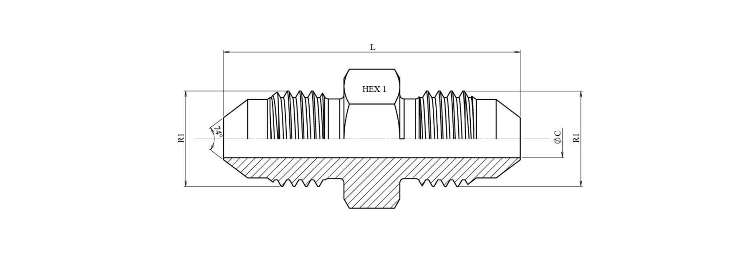HYDRAULIK-DOPPELNIPPEL JIC74° 7/16”-20 7/16”-20