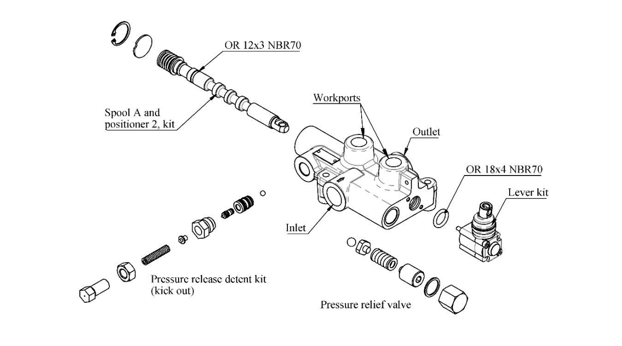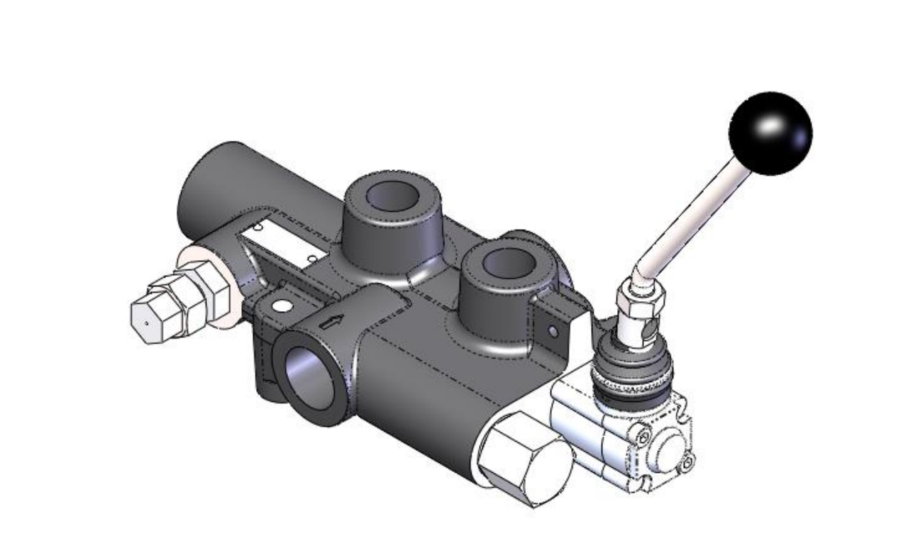 Das Ventil verfügt über eine automatische Druckentlastungsfunktion. Sobald der eingestellte Druck erreicht ist (Werkseinstellung 150 bar), kehrt der Hebel automatisch in die Neutralstellung zurück.