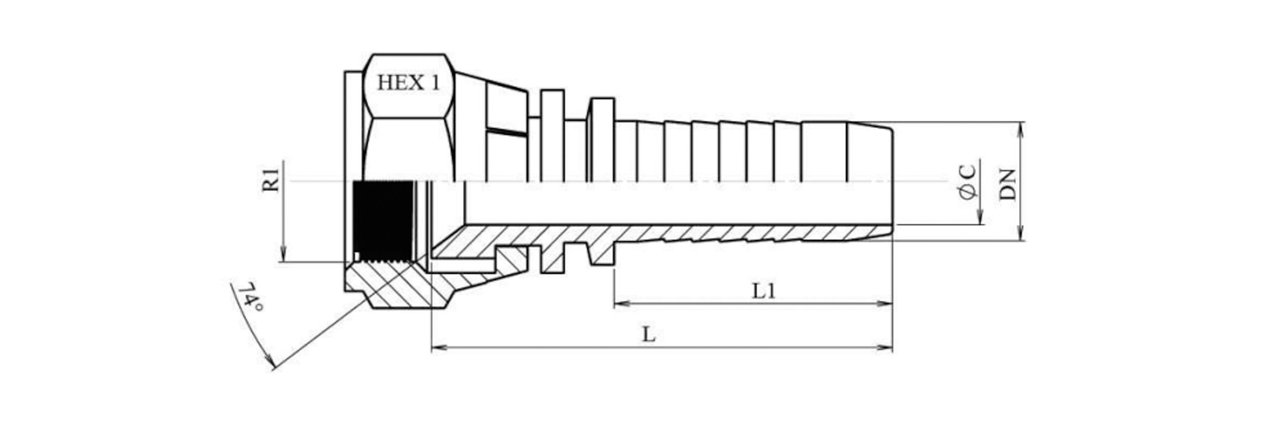 HYDRAULISCHER ANSCHLUSS DKJ JIC74° WEIBLICH DN10-7/8”-14