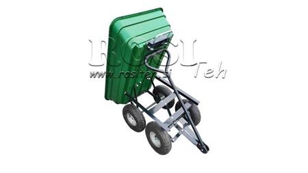 Der Gartenwagen oder Kipperwagen ist ideal für Gartenarbeiten (Transport von Obst und Gemüse). Er ist unentbehrlich in Werkstätten für die Lagerung oder den Transport von schwereren Gegenständen, da er über Gummiräder verfügt, die eine komfortable Fahrt ermöglichen.