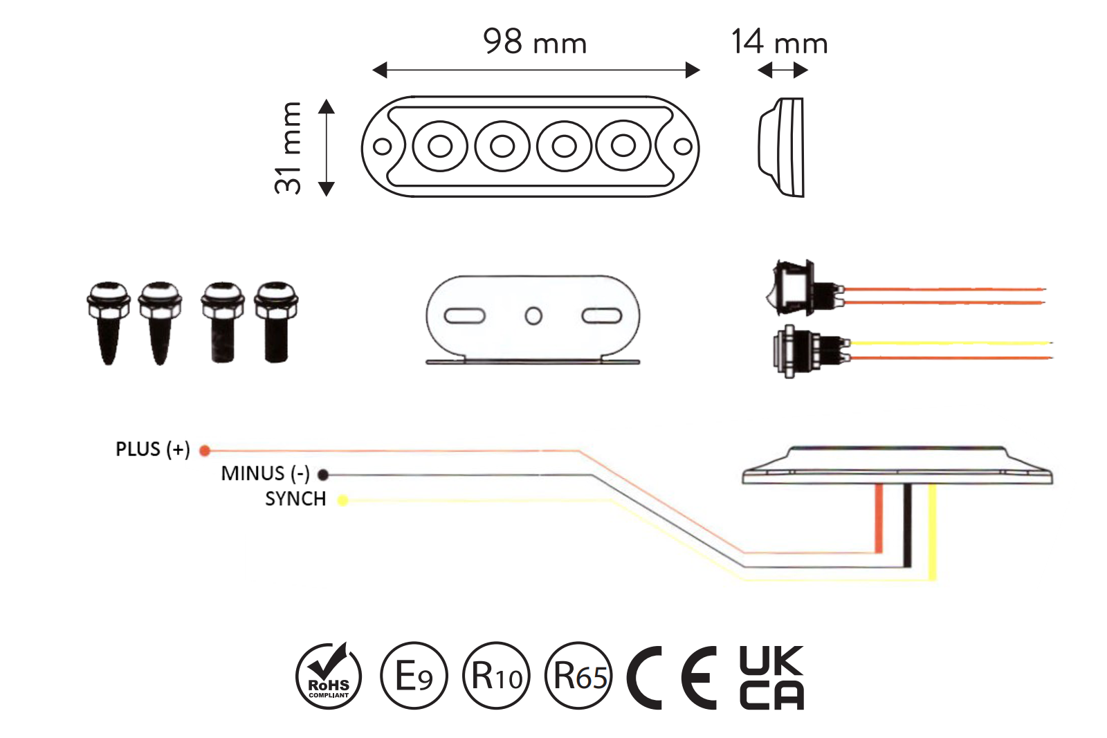Die LED-Stroboskopleuchte ist eine effektive Warnleuchte, geeignet für den Einsatz an verschiedenen Fahrzeugen, Arbeits- und Kommunalmaschinen, Anhängern sowie an landwirtschaftlichen und bautechnischen Geräten. Dank der hohen Helligkeit der LEDs bleibt sie auch bei widrigen Witterungsbedingungen gut sichtbar. Sie arbeitet mit 12 oder 24 Volt, zeichnet sich durch einen niedrigen Energieverbrauch und eine lange Lebensdauer aus. Das Gehäuse ist robust und vibrationsbeständig und damit für den Außeneinsatz geeignet. Die Leuchte lässt sich leicht montieren und erhöht die Sicherheit und Sichtbarkeit auf der Straße oder auf der Baustelle.