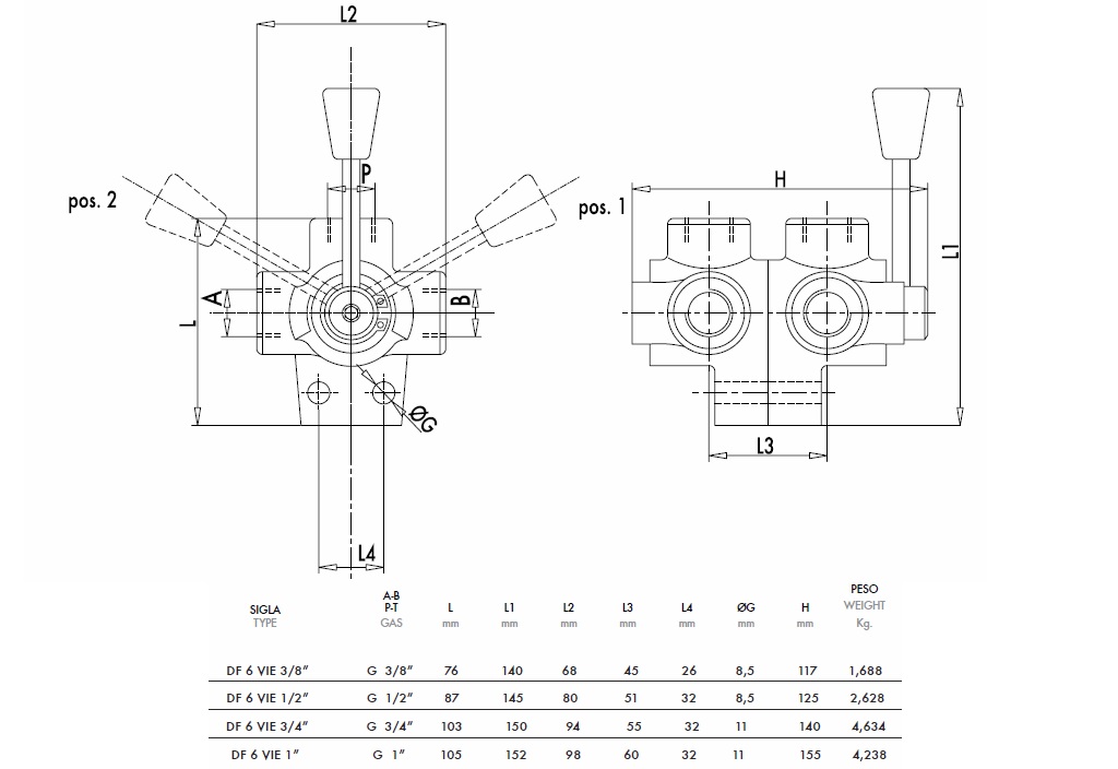 MANUELLE 6 WEGE VENTIL DF 1/2 - 60 lit