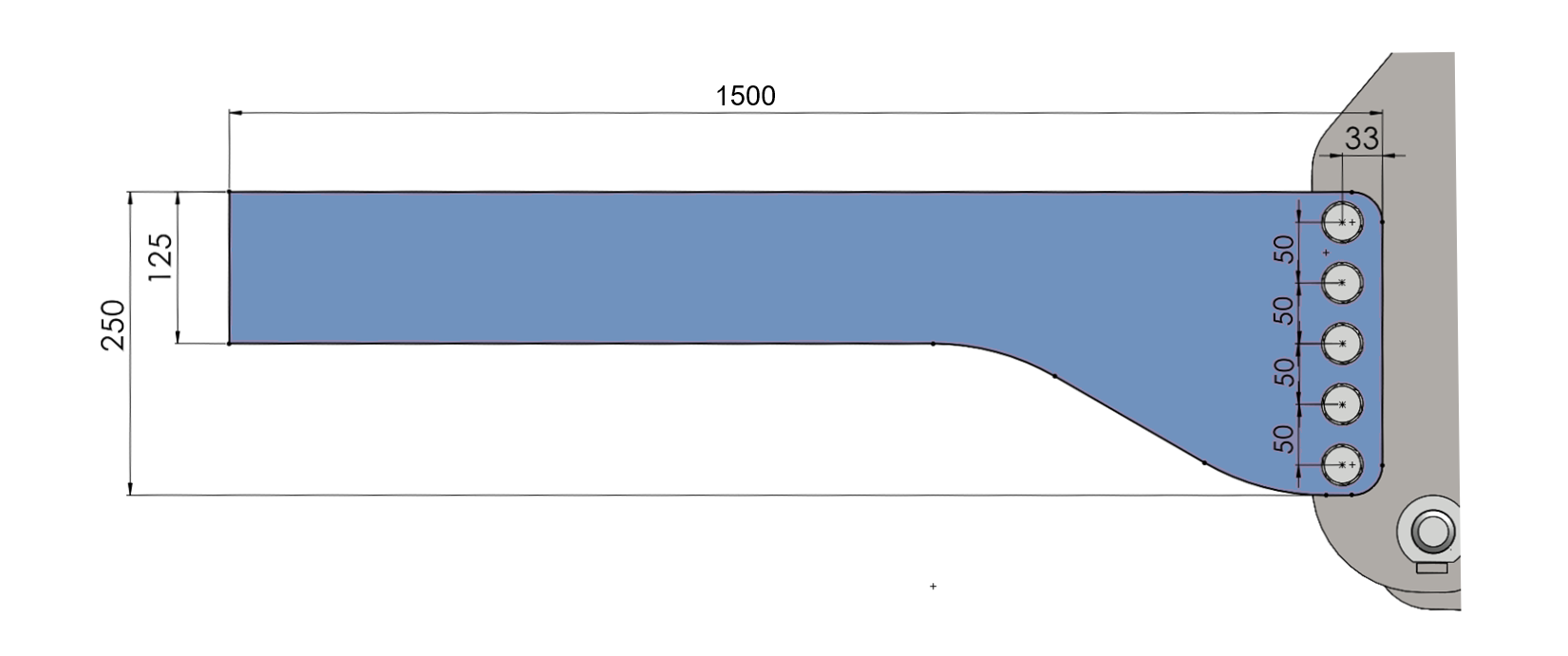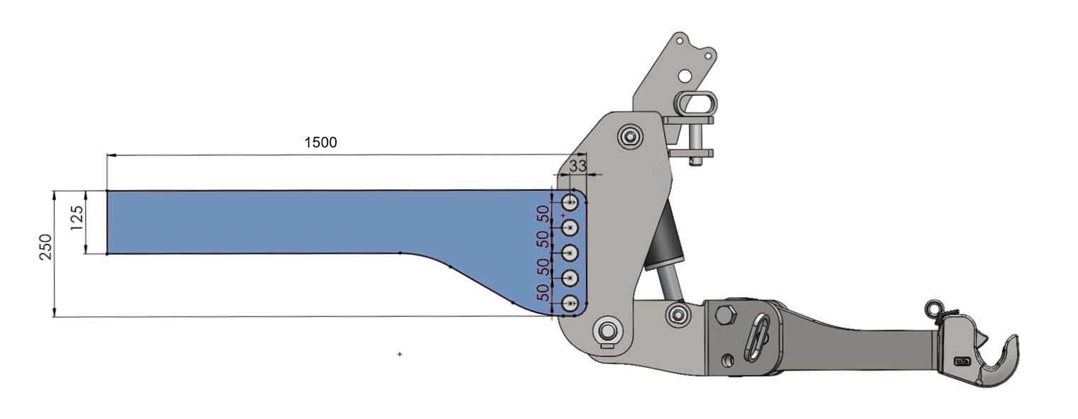 Die 1500 mm lange Platte kann auf die gewünschte Länge zugeschnitten werden, und die Montagebohrungen werden entsprechend dem Traktor gebohrt.